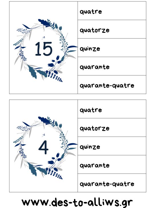 Το παρόν προϊόν αποτελείται από 36 πλαστικοποιημένες κάρτες με τους αριθμούς εώς το 99 στα γαλλικά .
